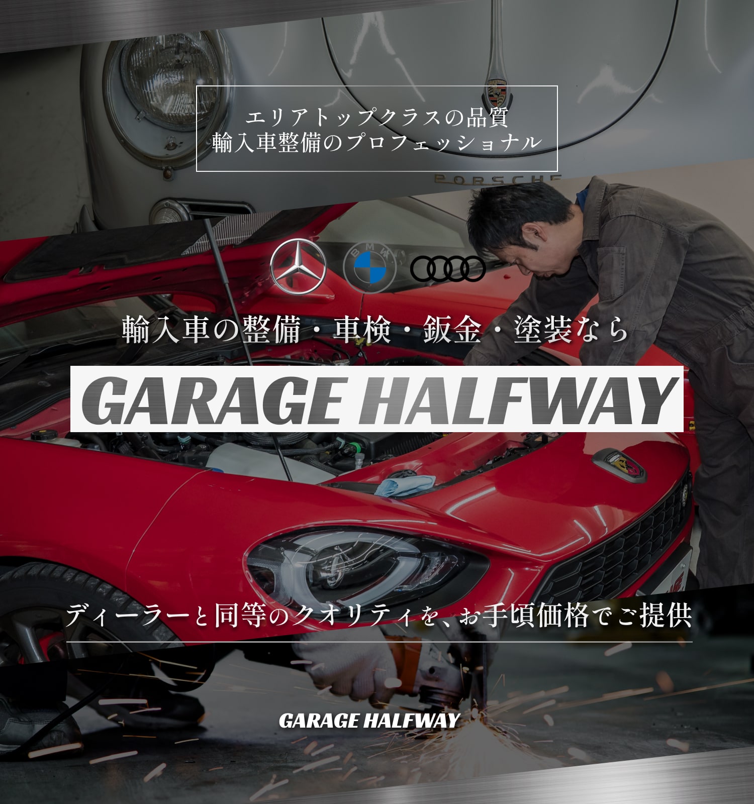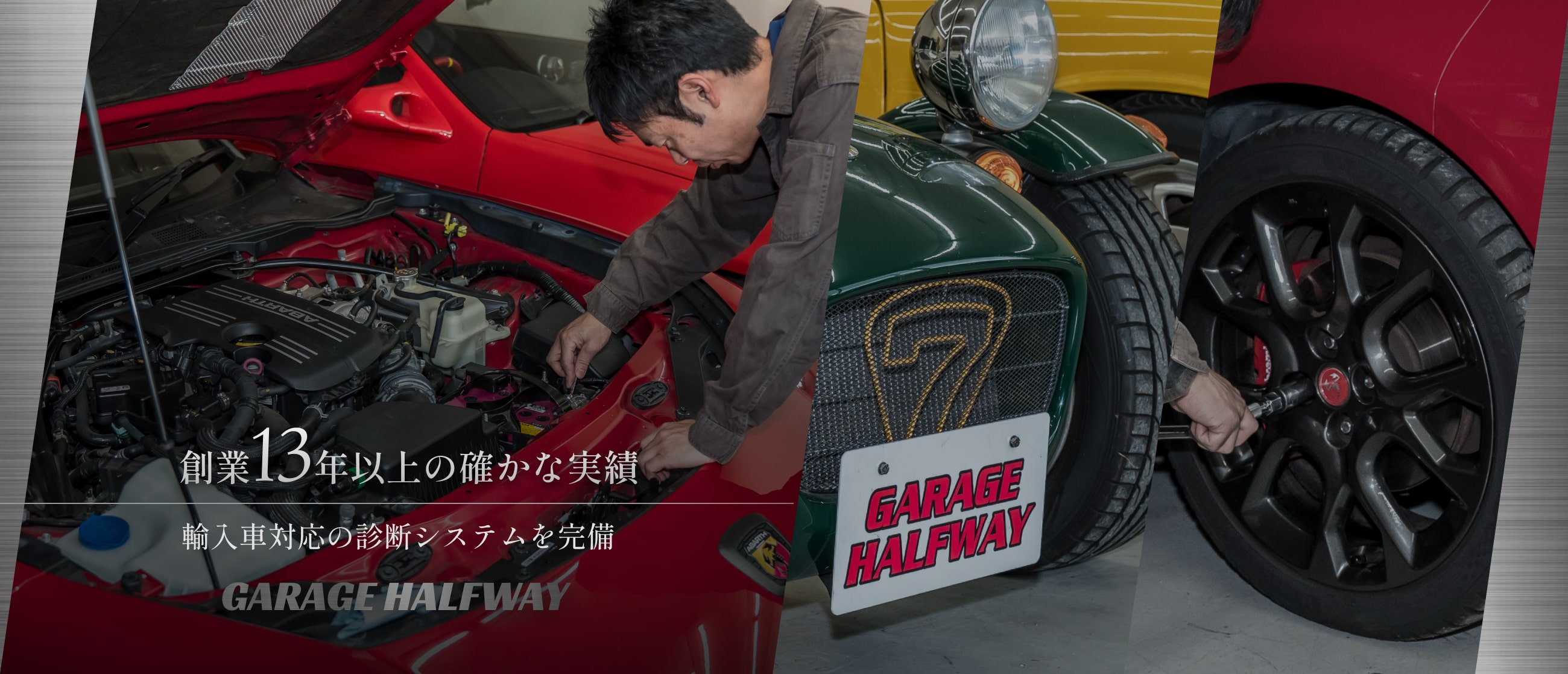 愛車の整備・車検・鈑金・塗装は、ガレージハーフウェイにお任せください